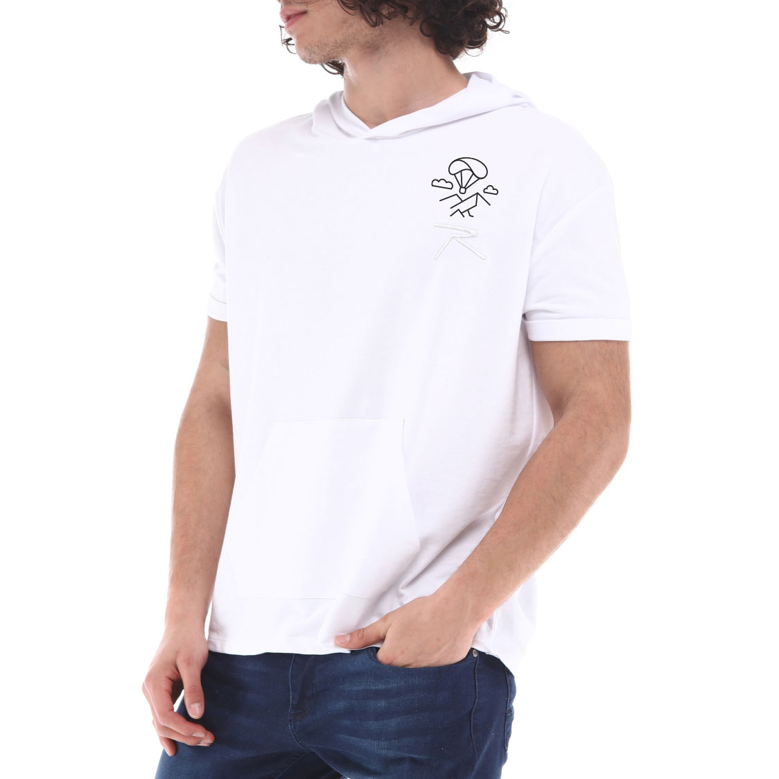 %95 Cotton %5 Likra Raru Short-Sleeve Hooded Sweatshirt Homewear / Lounge Clothing, 2-thread fabric, Relaxed fit, Hooded, Kangaroo pocket, Casual / Basic, Comfortable, White Raru ''R'' embroidered logo on the left chest of the men's short-sleeve hooded sweatshirt. Model's measurements: Chest: 103cm Waist: 77cm Hips: 101cm Height: 190cm Weight: 80kg Product size on the model: Large