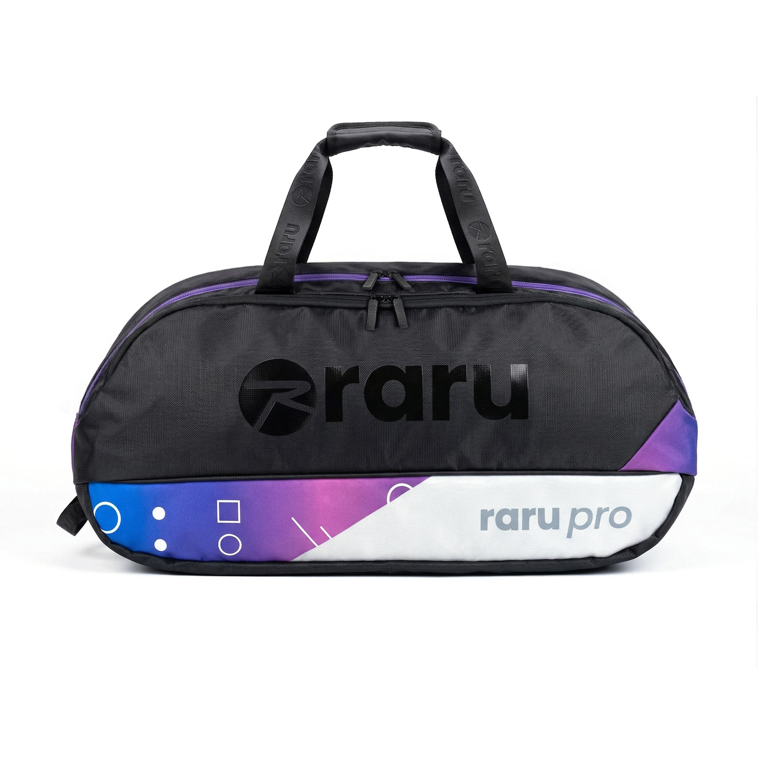 Kolay taşıma askılarına sahip Raru badminton çantası.