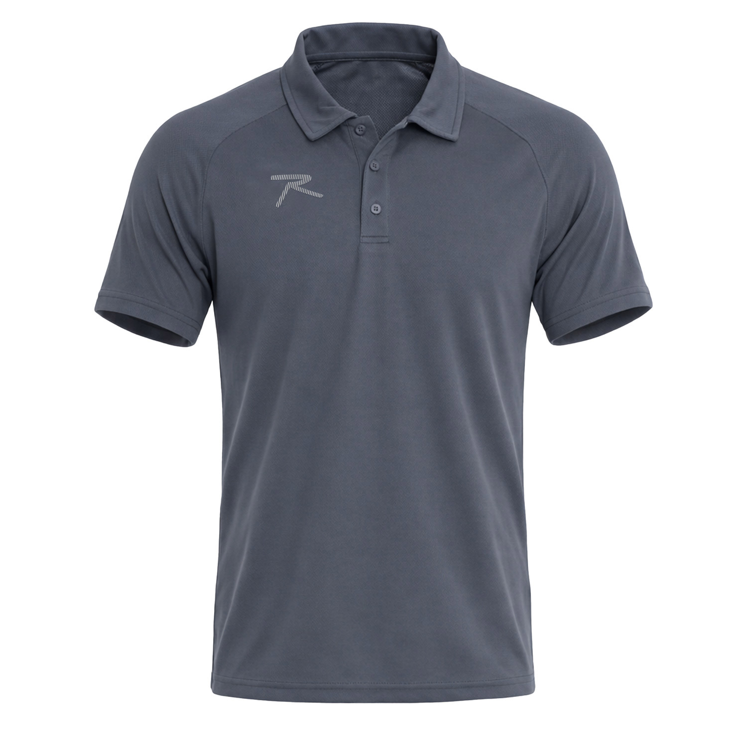 Slim fit / Dar kalıp, Düz renk, Reglan kol, yakası düğmeli, Günlük / Casual, Göğüste gümüş renk Raru ‘’R’’ baskı logolu erkek polo yaka tişört.